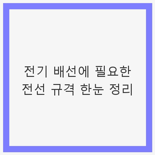 이 글에서는 전기 배선에 필요한 전선 규격에 대해 한눈에 정리하여, 배선 작업을 보다 안전하고 효율적으로 수행할 수 있도록 도와드릴 것입니다. 전선의 종류, 굵기, 설치 시 유의사항 등 다양한 정보를 제공하여, 전선 선택에 있어 혼란이 없도록 하겠습니다.