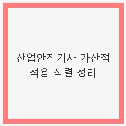 산업안전기사가 적용되는 가산점 직렬에는 여러 가지가 있습니다. 일반적으로 기술직 공무원 직렬에서는 산업안전기사 자격증이 가산점으로 인정받습니다. 이외에도 기계, 전기, 화학 등 다양한 분야에서 관련 자격증 소지자에게 가산점이 부여됩니다.