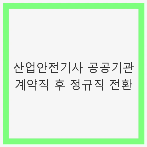 계약직으로 시작하면 불안정한 고용 형태로 시작할 수 있지만, 이를 극복하고 정규직으로 전환되는 것은 많은 이들에게 희망을 주는 과정입니다. 이번 글에서는 산업안전기사 자격증을 취득한 후 공공기관에서 계약직으로 근무한 사례를 통해, 정규직 전환의 가능성과 그 과정에 대해 설명드리고자 합니다. 이를 통해 많은 이들이 자신의 꿈을 현실로 이룰 수 있는 방법을 찾을 수 있도록 돕고자 합니다.