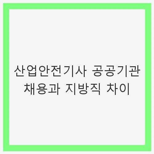 산업안전기사와 지방직 간의 가장 큰 차이는 채용의 기준과 요구 사항입니다. 공공기관에서는 산업안전기사 자격증이 필수적이거나 가산점으로 작용하는 경우가 많지만, 지방직은 반드시 필요하지 않은 경우가 많습니다. 이는 공공기관의 안정성과 직결되기 때문에, 더욱 중요시되는 면이 있습니다.